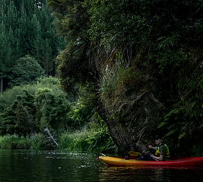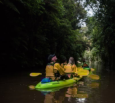 Enjoy the twilight and silence of being on the water as the day draws to an end. As night arrives over the lake, you will paddle slowly up the Pokaiwhenua Stream, through the canyon carved out by water over hundreds of years. Native ferns and trees drape over you, bird life is all around.