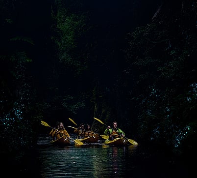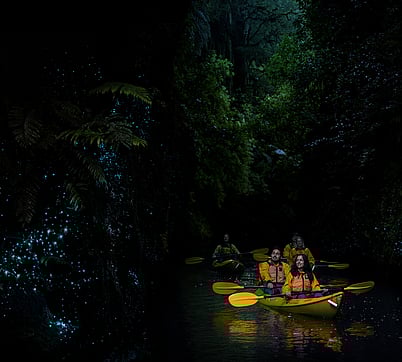 Starting late afternoon or early evening, enjoy spectacular sights you can only experience by kayak. Paddle slowly through the Pokaiwhenua canyon and, when darkness falls, be guided by titiwai (NZ glow worms) on either side.
