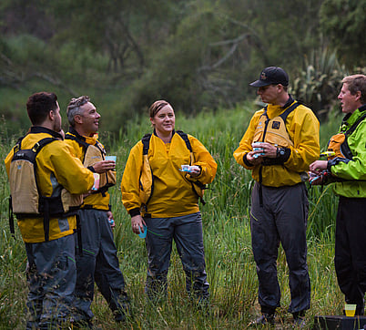 To make your experience as comfortable as possible, we provide you with overpants, splash jackets and wet shoes.