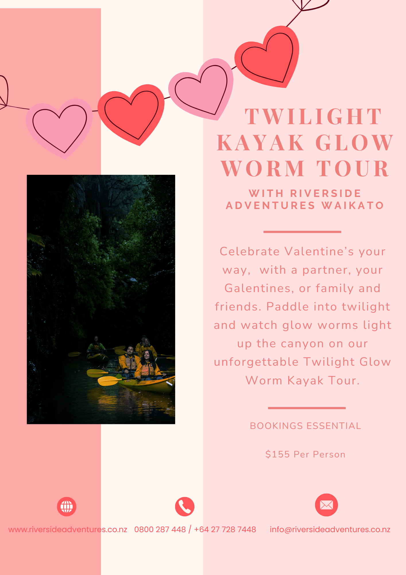 Celebrate Valentine’s Day in a truly unforgettable way with our Twilight Kayak Glow Worm Tour.